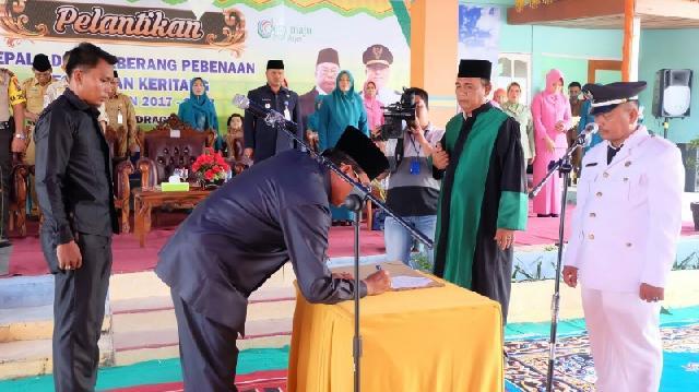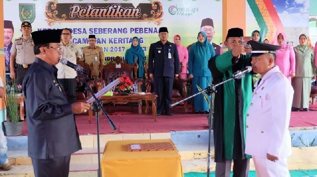 HARIANRIAU.CO - Dalam prosesi pelantikan Kepala Desa (Kades) Seberang Pebenaan, Kecamatan Keritang, Bupati Kabupaten Indragiri Hilir (Inhil), HM Wardan mengingatkan kepada Kepala Desa yang baru dilantik untuk selalu menjunjung tinggi amanah masyarakat yang telah memilihnya menjadi pemimpin.