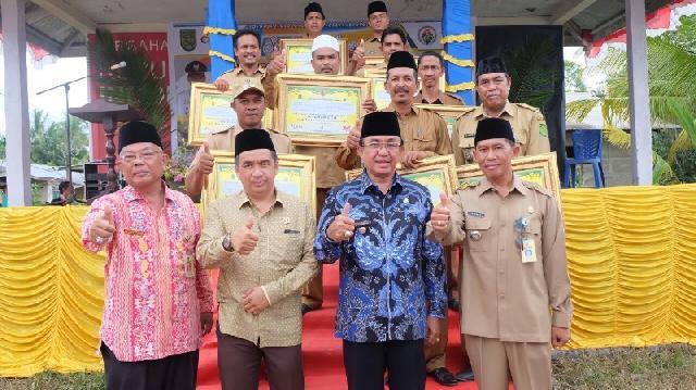 HARIANRIAU.CO - Bupati Kabupaten Indragiri Hilir (Inhil), HM Wardan meresmikan sejumlah kegiatan pembangunan yang dilaksanakan melalui program Desa Maju Inhil Jaya (DMIJ) di Kecamatan Gaung Anak Serka (GAS), Jum'at (26/1/2018).