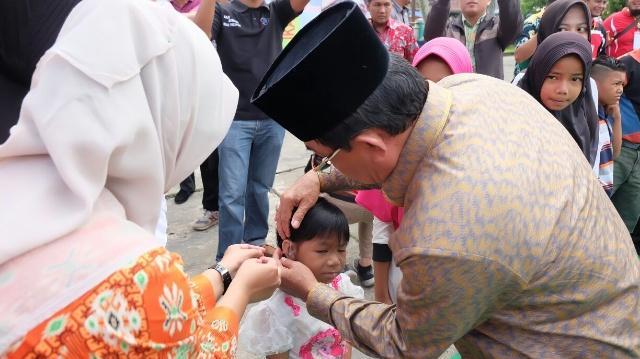 Pada kegiatan ini, Bupati Inhil, HM Wardan menyerahkan secara simbolis cinderamata alat bantu dengar kepada penderita gangguan pendengaran atau tunarungu serta sejumlah bantuan Al - Qur'an dan kain dari Persatuan Alumni Fakultas Kedokteran Universitas Andalas, Padang.
