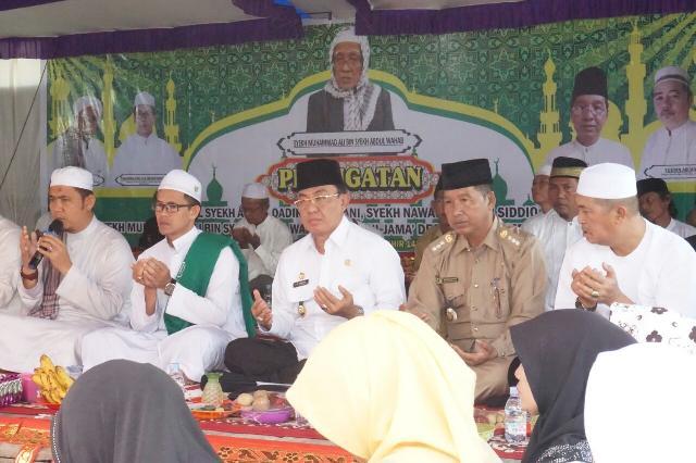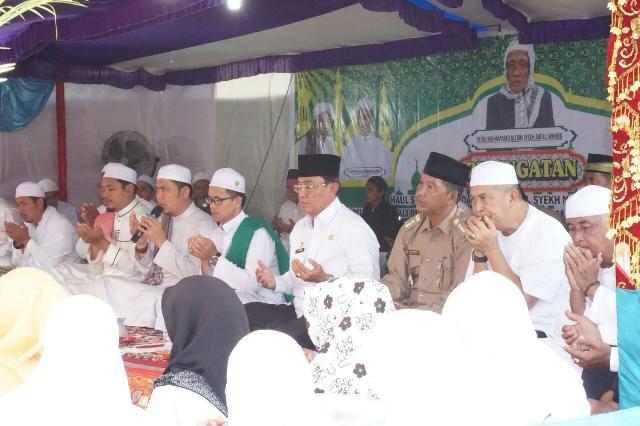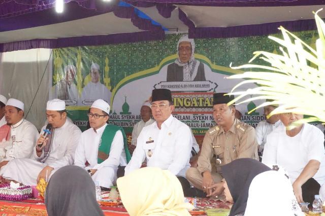 HARIANRIAU.CO - Bupati Kabupaten Indragiri Hilir (Inhil), Hm Wardan menghadiri acara haul Sultani Aulia Syekh Abdul Qadir Al - Jaelani yang diselenggarakan di Desa Sungai Ambat, Kecamatan Enok, Senin (15/1/2018) pagi.