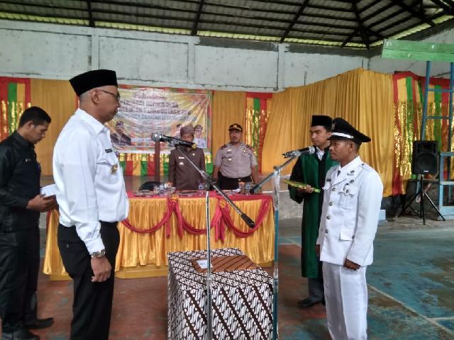 HARIANRIAU.CO - Penjabat (Pj) Bupati Kabupaten Indragiri Hilir (Inhil), Rudyanto melantik Penjabat (Pj) Kepala Desa (Kades) dan meresmikan keanggotaan Badan Permusyawaratan Desa (BPD) Desa Simpang Tiga Daratan di aula Kantor Camat Enok, Jum'at (16/3/2018).