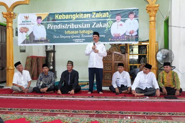 HARIANRIAU.CO - Sekretaris Daerah (Sekda) Kabupaten Indragiri Hilir (Inhil) menyerahkan zakat dari Badan Amil Zakat Nasional (Baznas) Kabupaten Inhil kepada 400 orang Mustahiq di 3 (tiga) Desa dan Kelurahan Kecamatan Gaung, Selasa (12/6/2018).