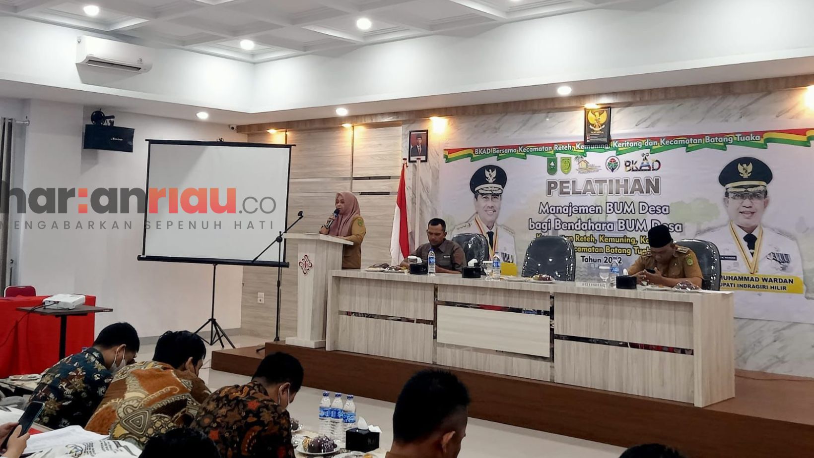HARIANRIAU.CO - Dinas Pemberdayaan Masyarakat dan Desa Kabupaten Indragiri Hilir, Riau menggelar pelatihan manajemen BUMDes bagi Bendahara BUMDes di empat Kecamatan, Selasa (1/11/ 2022).