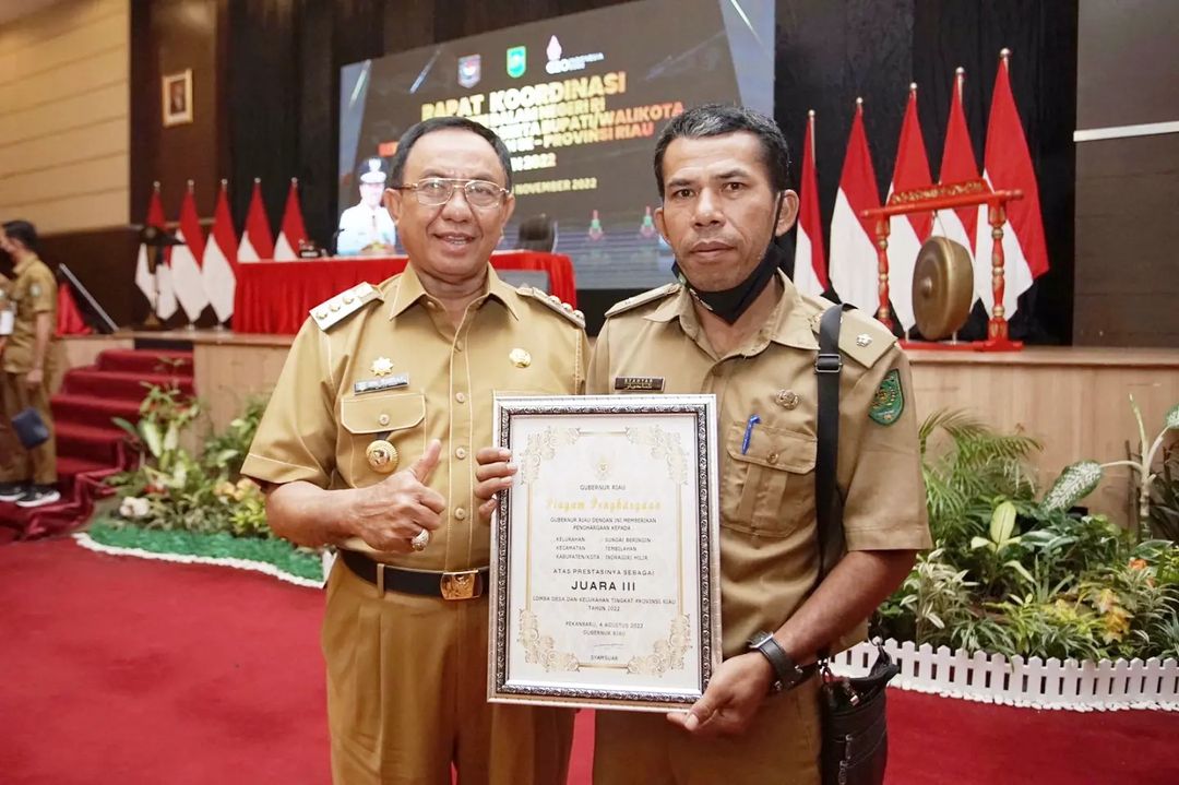 Di kesempatan ini Mendagri RI juga menyerahakan piagam penghargaan kepada Kecamatan dan Kelurahan yang berkinerja terbaik di Provinsi Riau tahun 2022, dan Untuk Kabupaten Indragiri Hilir Kelurahan Sungai Beringin berhasil meraih juara III lomba Kelurahan tingkat Provinsi Riau tahun 2022, Piagam Penghargaan tersebut di terima oleh Lurah Sungai Beringin Syahyar.