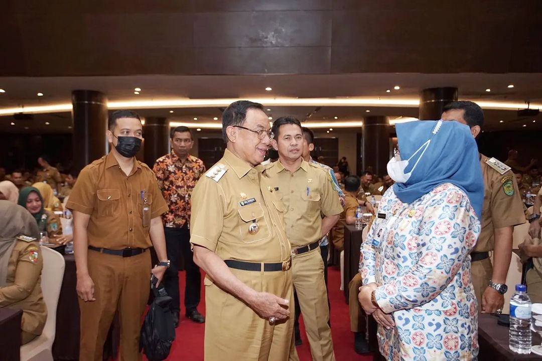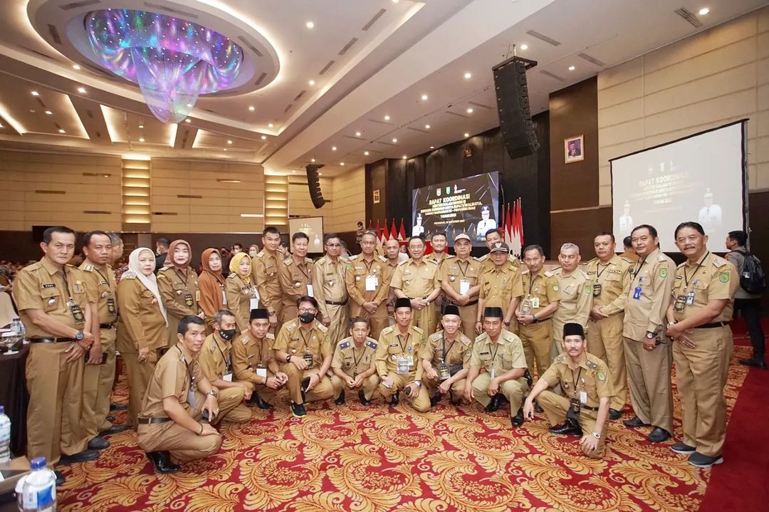 HARIANRIAU.CO - Bupati Indragiri Hilir H.M Wardan beserta Camat, Lurah Se- Kabupaten Indragiri Hilir menghadiri rapat koordinasi (Rakor) Camat dan Lurah se-Kabupaten/Kota se - Provinsi Riau yang diselenggarakan Pemerintah Provinsi (Pemprov) Riau.