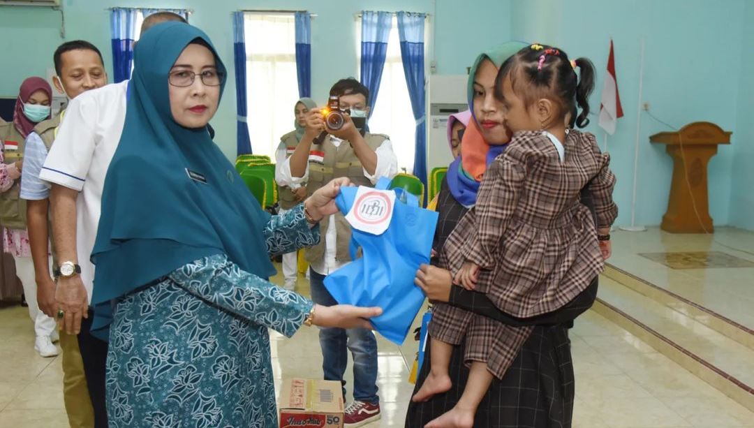 Pada kesempatan tersebut juga diserahkan bantuan kepada kelurga dan anak deteksi stunting oleh Ketua Stunting Inhil H.Syamsuddin Uti, Ketua TP PKK Hj.Zulaikhah Wardan serta Ketua IDI Cab.Inhil.