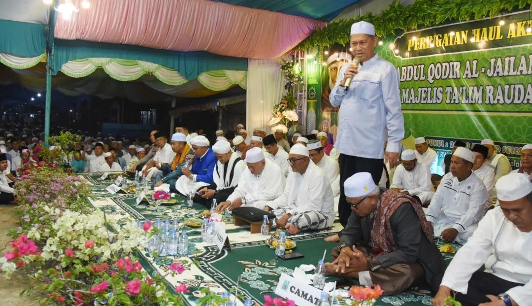 HARIANRIAU.CO - Wakil Bupati Kabupaten Indragiri Hilir H.Syamsuddin Uti pada Sabtu (12/11/2022) malam kembali menghadiri Peringatan Haul Akbar Syekh Abdul Qadir Al-Jailani yang dipusatkan RT 04 RW 07 Kelurahan Sungai Salak Kecamatan Tempuling.
