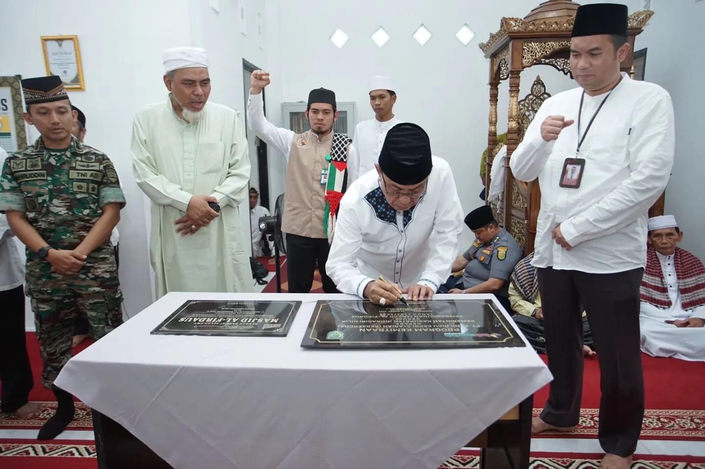 Peresmian Masjid ditandai dengan, penyerahan secara simbolis berupa dummy CSR pembangunan lanjutan Mesjid Al Firdaus dari PT. Bank Riau Kepri Syariah kepada Bupat dan dilanjutkan penandatanganan Berita acara serah terima pekejaan pembangunan CSR PT. Bank Riau Kepri Syariah oleh Bupati dengan Pimpinan PT. Bank Riau Kepri Syariah,