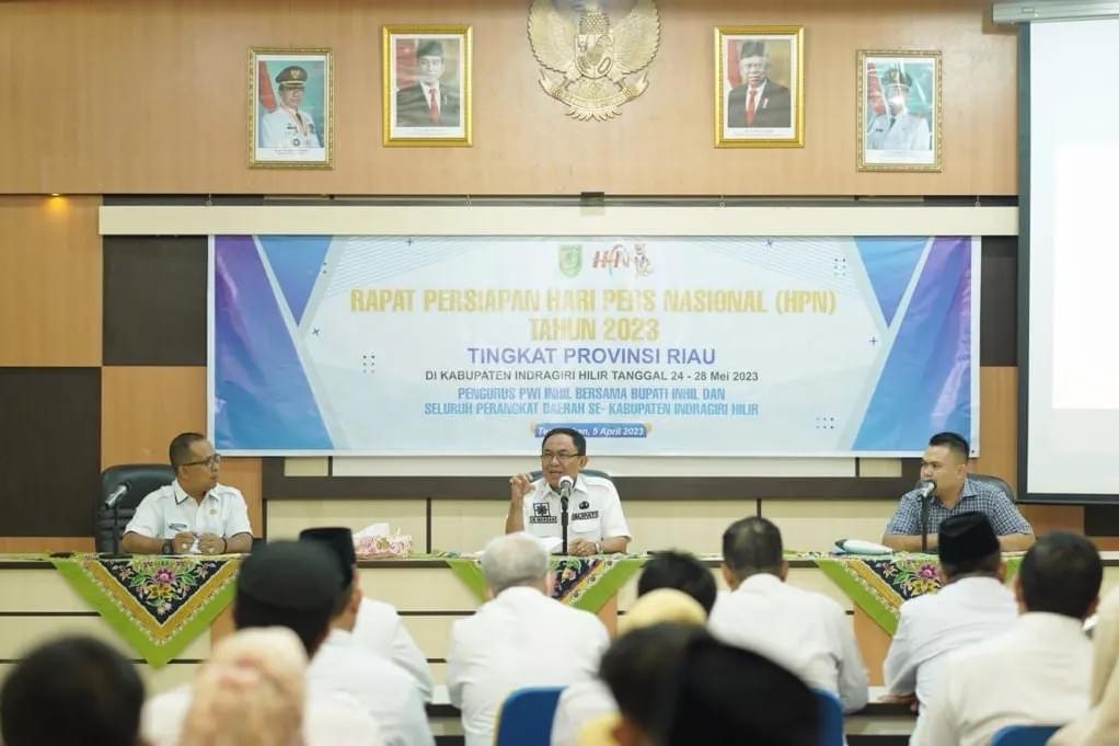 HARIANRIAU.CO - Bupati Inhil HM Wardan pimpin Rapat Awal Persiapan perhelatan Hari Pers Nasional tingkat provinsi Riau tahun 2023, dimana kabupaten Indragiri hilir dipercaya untuk menjadi tuan rumah.