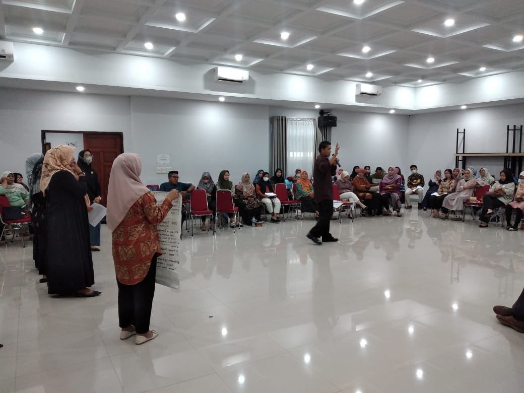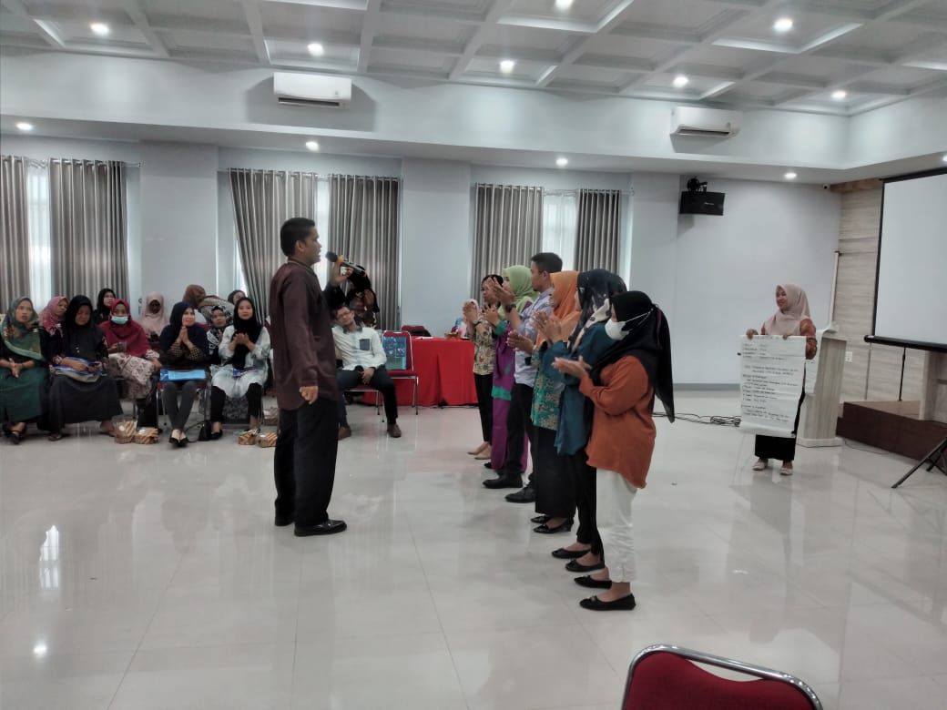 Prosesi penutupan kegiatan yang diikuti oleh puluhan peserta, terdiri dari pengelola program promosi kesehatan (promkes), pemberdayaan masyarakat Puskesmas, bidan desa dan kader Posyandu ini dilakukan oleh Kadiskes Rahmi Indrasuri SKM MKI diwakili Sub Koordinator Promkes dan Pemberdayaan Masyarakat Maria Hairani SKM.