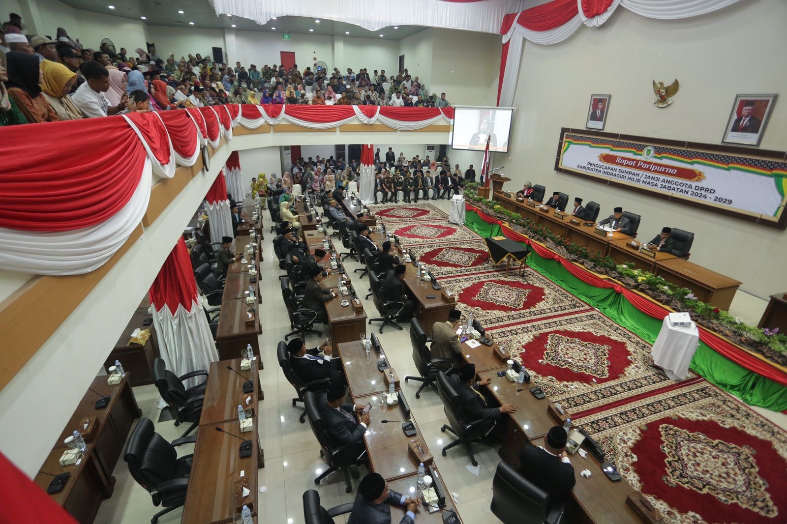 HARIANRIAU.CO - DPRD Kab. Indragiri Hilir taja Rapat Paripurna pengucapan sumpah atau janji anggota DPRD Kabupaten Inhil masa jabatan 2024-2029 di gedung DPRD Inhil Jl. Soebrantas Tembilahan, Selasa (17/09/2024).