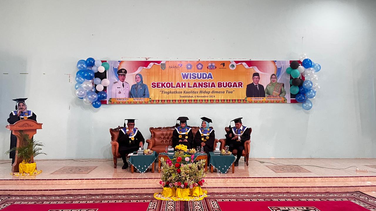 Di jelaskan Pj Bupati, Kegiatan pertemuan pembelajaran di sekolah lansia bugar ini dimulai sejak bulan mei 2024 dan hingga saat ini peserta sekolah lansia sudah menyelesaikan 12 kali pertemuan di setiap standar sekolah lansia dan telah dinyatakan lulus dan berhak mendapatkan sertifikat kelulusan dan dapat mengikuti wisuda, seperti yang kita laksanakan pada hari ini.