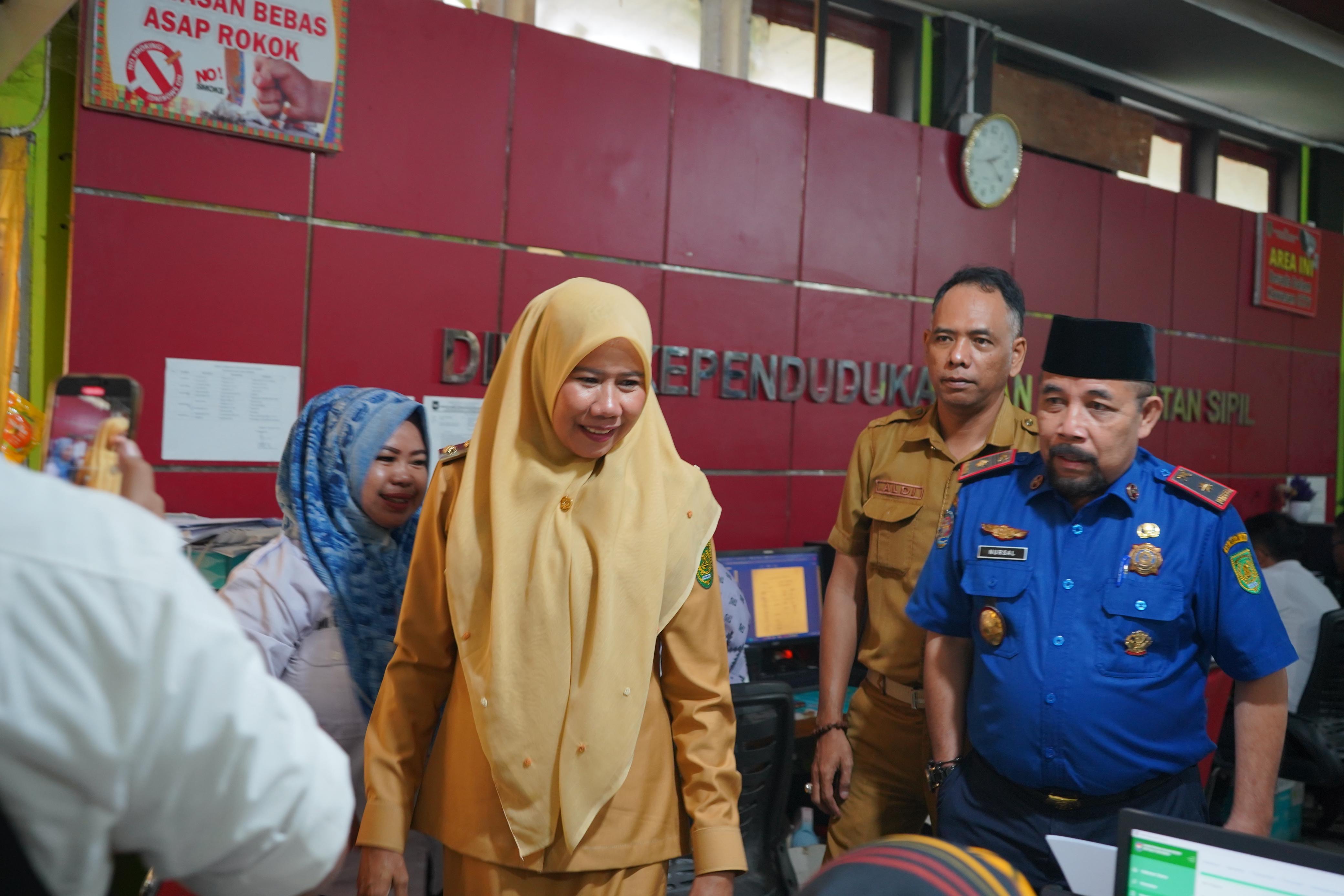 Setelah meninjau operasi pasar murah, Wakil Bupati melanjutkan kunjungan ke Kantor Dinas Kependudukan dan Pencatatan Sipil (Disdukcapil) Inhil untuk melihat langsung proses pelayanan administrasi kependudukan bagi masyarakat. Ia menekankan pentingnya kemudahan akses layanan kependudukan, terutama bagi warga desa.
