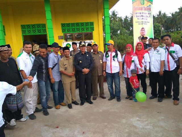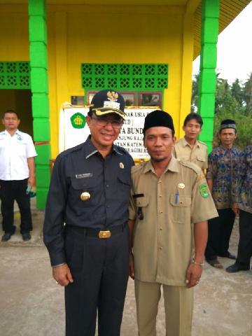 Kepala Desa Tanjung Raja, Sunardi saat berfoto bersama Bupati HM Wardan pada peresmian Gedung Paud Permata Bunda.