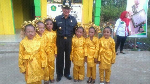 Bupati Inhil, HM Wardan saat foto bersama dengan anak Paud Permata Bunda.