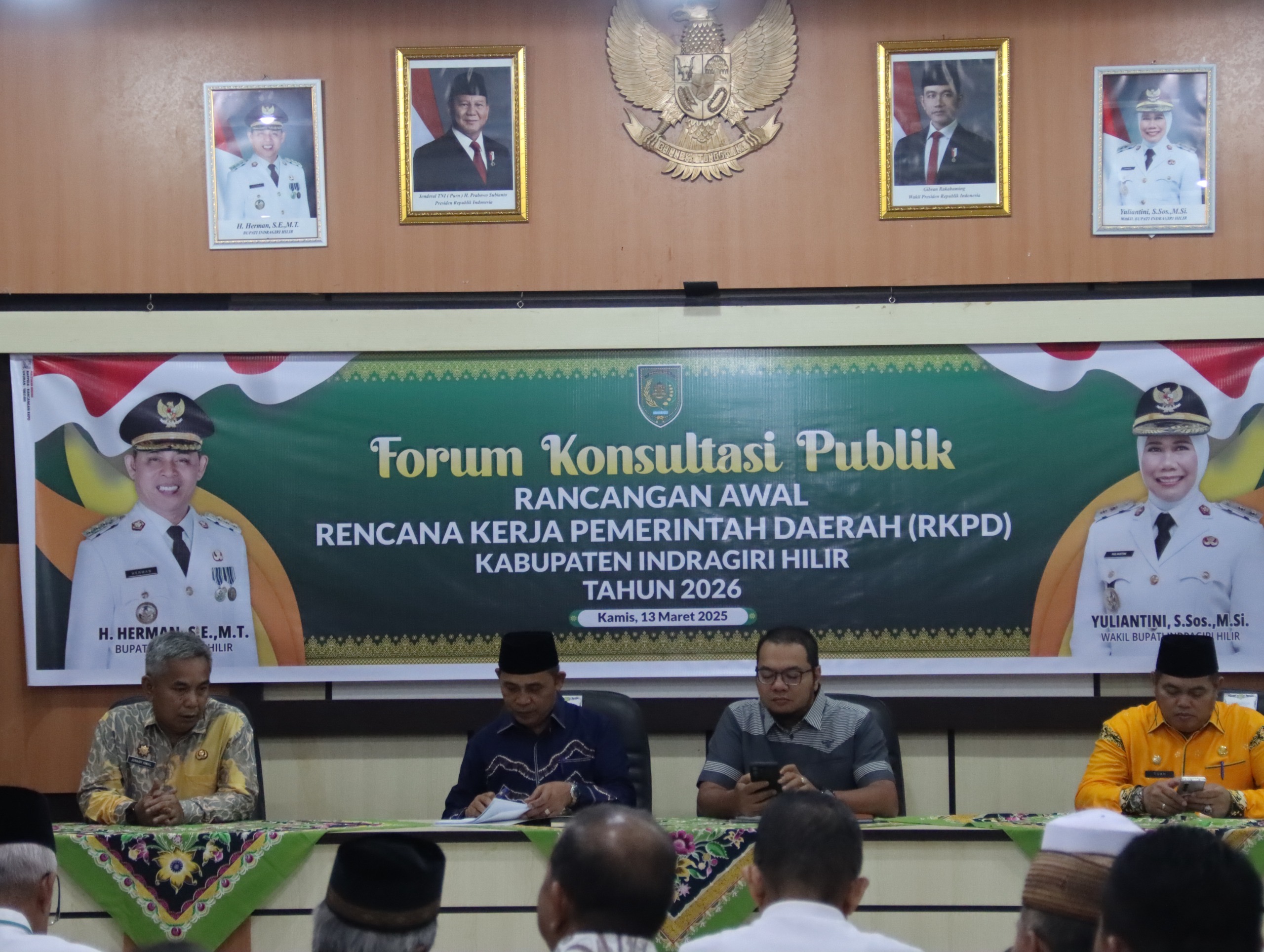 HARIANRIAU.CO – Pemerintah Kabupaten Indragiri Hilir menggelar Forum Konsultasi Publik (FKP) Rancangan Awal Rencana Kerja Pemerintah Daerah (RKPD) Tahun 2026, Kamis (13/3/2025) di Kantor Bappeda Inhil, Jalan Akasia, Tembilahan.