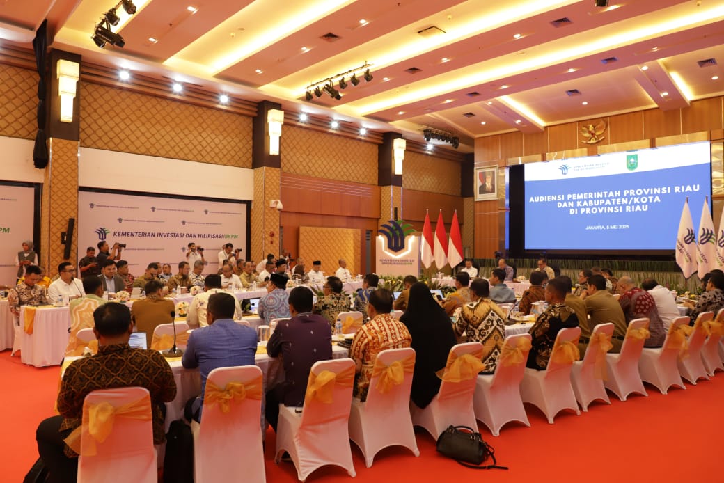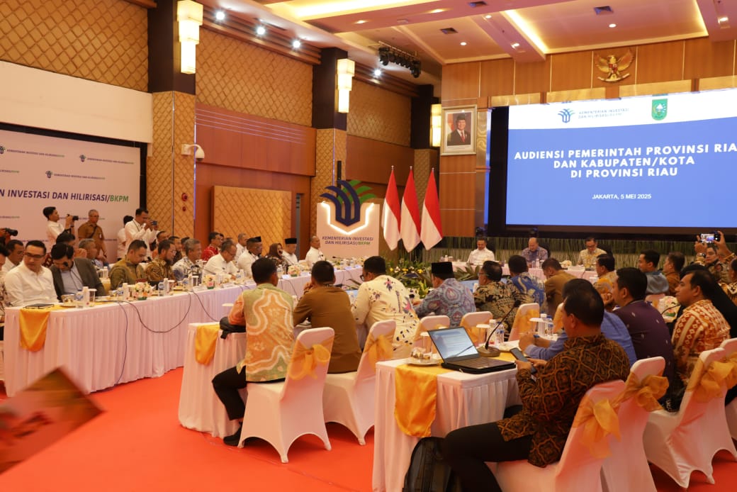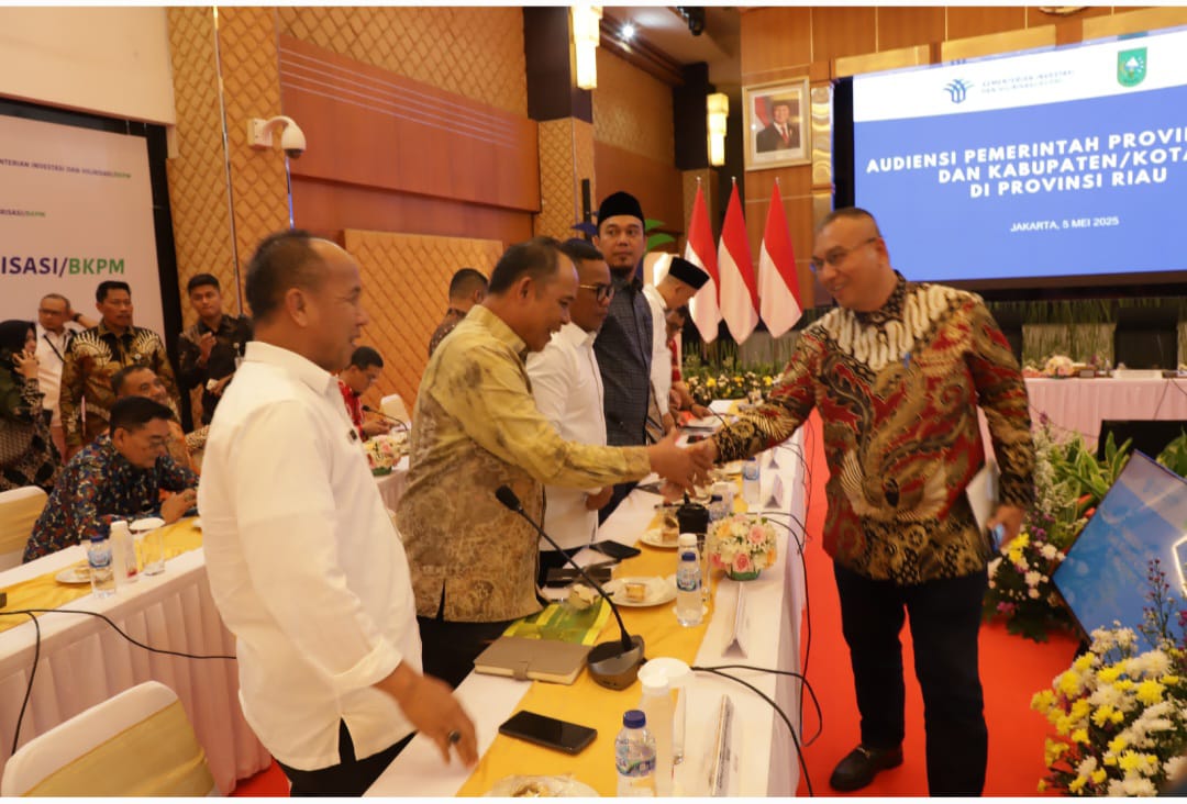 HARIANRIAU.CO - Bupati Indragiri Hilir (Inhil), Herman, melakukan audiensi bersama Menteri Investasi/Kepala Badan Koordinasi Penanaman Modal (BKPM) Republik Indonesia, Rosan Perkasa Roeslan, di Jakarta, Senin (5/5/2025). Pertemuan ini merupakan bagian dari kunjungan kerja kepala daerah se-Provinsi Riau yang dipimpin oleh Gubernur Riau, Abdul Wahid.
