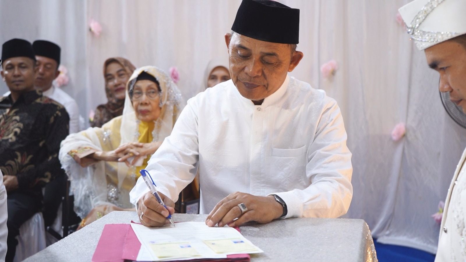 HARIANRIAU.CO - Bupati Indragiri Hilir (Inhil), H. Herman menghadiri sekaligus menjadi saksi dalam prosesi akad nikah putri pertama Kepala Dinas Komunikasi, Informatika, Persandian, dan Statistik Kabupaten Inhil, Dr. Trio Beni Putra, S.E., M.M., dan Ibu Desmawita, S.Pd.SD, pada hari Selasa, 10 Juni 2025.