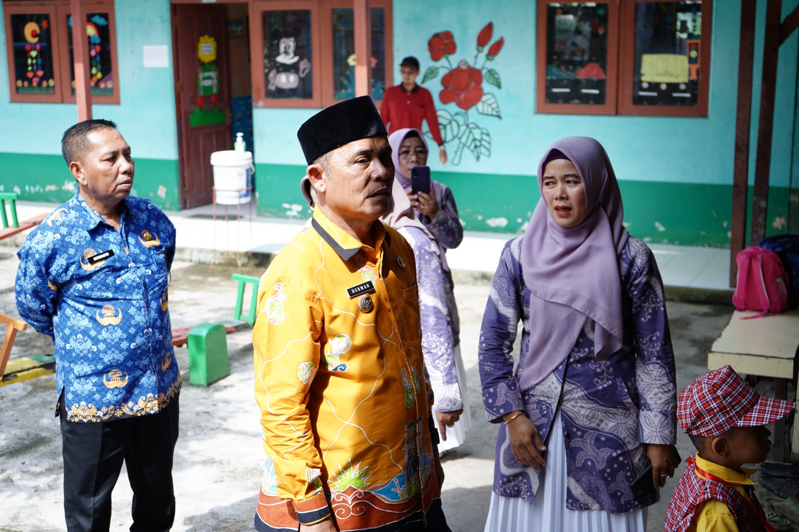 HARIANRIAU.CO - Bupati Indragiri Hilir (Inhil), H. Herman, bersama Bunda PAUD Kabupaten Inhil, Hj. Katerina Susanti, melakukan kunjungan ke Taman Kanak-Kanak (TK) Pertiwi 1 Tembilahan di Jalan Diponegoro, Kamis (17/7/2025) pagi. Kunjungan ini dilakukan dalam rangka meninjau langsung pelaksanaan Masa Pengenalan Lingkungan Sekolah (MPLS) sekaligus melihat kondisi sarana dan prasarana pendidikan anak usia dini di sekolah tersebut.