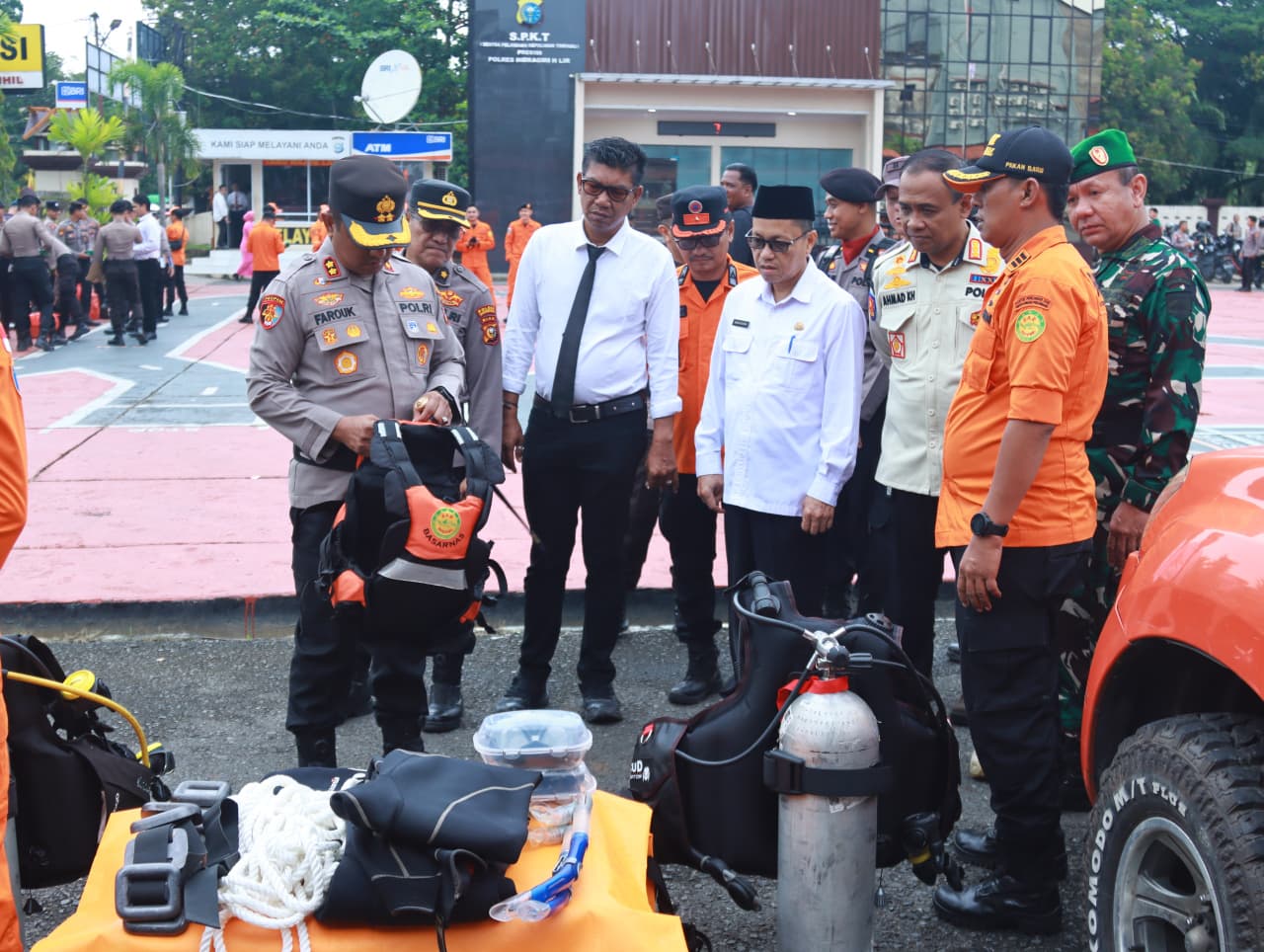Usai pelaksanaan apel, Asisten I Setda Inhil Fajar Husin bersama Kapolres Inhil,Bpbd Inhil, meninjau berbagai perlengkapan tanggap darurat yang telah disiapkan. Fajar mengatakan, pemerintah harus selalu hadir di tengah masyarakat dalam kondisi bencana.