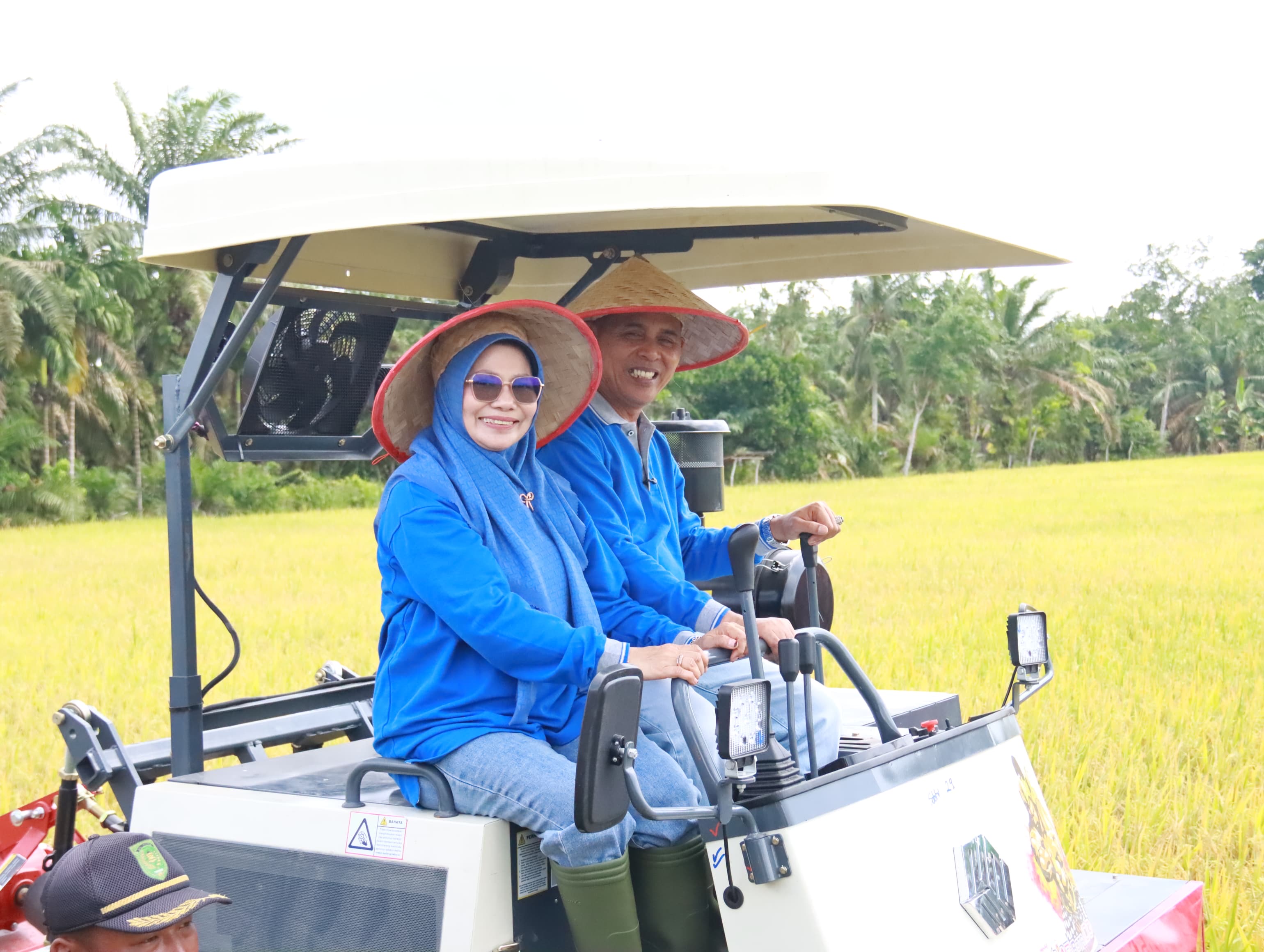 HARIANRIAU.CO - Bupati Indragiri Hilir (Inhil) H. Herman, bersama Ketua TP PKK Kabupaten Inhil Hj. Katerina Susanti Herman, menghadiri Panen Raya Padi Perdana Tanam Indeks Pertanaman (IP) 300 dan Panen IP 100 di wilayah kerja Brigade Pangan Kempas Jaya II, Kecamatan Kempas, Minggu 25 Januari 2025 yang turut dihadiri Wakil Ketua I DPRD Kabupaten Inhil, unsur Forkopimda Kabupaten Inhil, Camat Kempas, Lurah Kempas Jaya, para kepala desa se-Kecamatan Kempas, koordinator Balai Penyuluhan Pertanian (BPP), petugas Penyuluh Pertanian Lapangan (PPL), ketua brigade pangan desa, ketua kelompok tani, ketua pemuda, serta undangan lainnya.