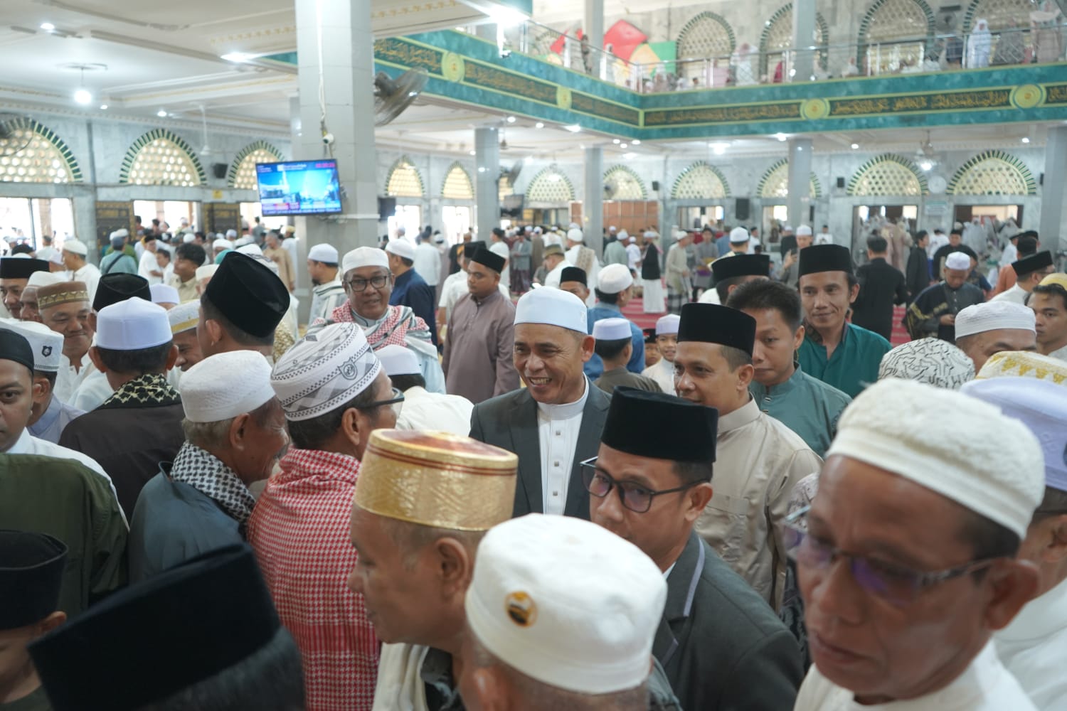 HARIANRIAU.CO - Bersama ribuan jemaah, Bupati Indragiri Hilir (Inhil) Herman melaksanakan salat Idul Fitri 1447 Hijriah/2026 Masehi yang digelar di Masjid Agung Al-Huda Tembilahan, Sabtu (21/3).